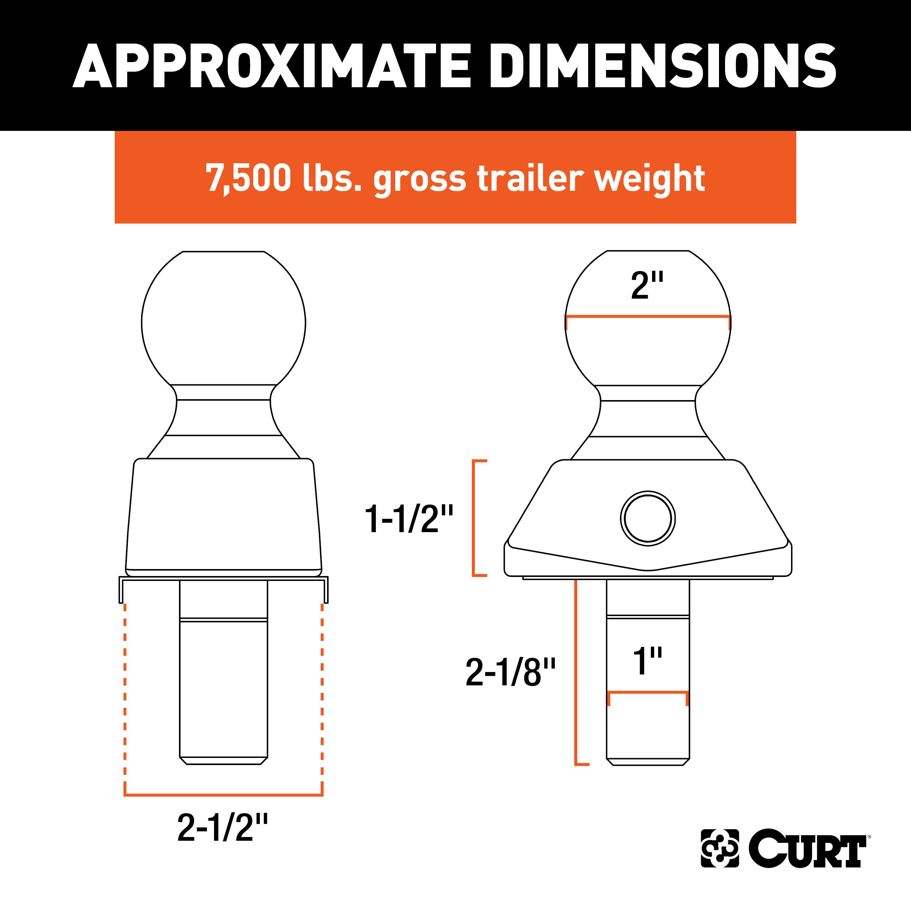The CURT RockerBall trailer ball is a cushion hitch ball that dynamically absorbs jerking and jarring from your trailer at the coupling point. Just bolt it onto your existing trailer hitch ball mount to enjoy increased comfort, enhanced control and extended longevity of your vehicle's systems. The RockerBall tow ball is engineered with ShockDrop technology: a cushion isolator that reduces noise, vibrations and chucking at the coupling point. This produces quieter towing, increased driver control over the trailer and reduced strain on the vehicle's brakes, towing system and suspension, compared to a conventional metal-on-metal towing connection. The RockerBall fits onto a variety of standard ball mounts -- virtually any ball mount with a 2-1/2-inch wide trailer ball tongue and 1-inch diameter ball hole. RockerBall is also virtually maintenance-free. Unlike other cushion hitch and torsion hitch options, it has no airbags or bearings to service. Just apply grease to the zerk fitting as needed for continuous lubrication and smooth towing. The RockerBall trailer ball is constructed from forged steel for exceptional strength, and it comes with a powder coat finish and chrome plating for dependable corrosion resistance.